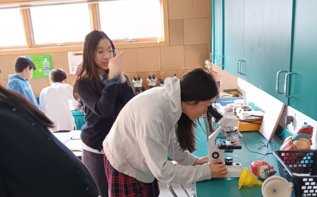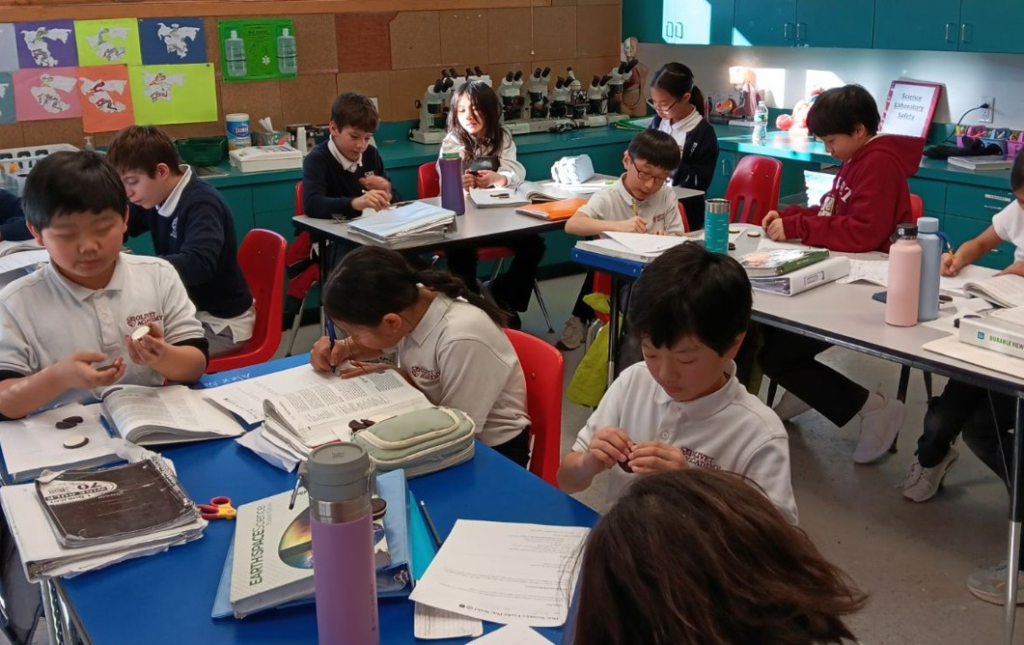 Over the past two weeks, students in grades 6 through 8 participated in a variety of interactive science lessons. Eighth-grade students investigated how temperature affects dissolving time by conducting an experiment using lollipops. Seventh graders closely observed moss under microscopes while studying nonvascular plants, gaining insight into the intricate design of nonvascular plant life. Sixth-grade students used cookies as models to learn about plate tectonics, helping them visualize how Earth’s plates move and interact beneath the surface.
