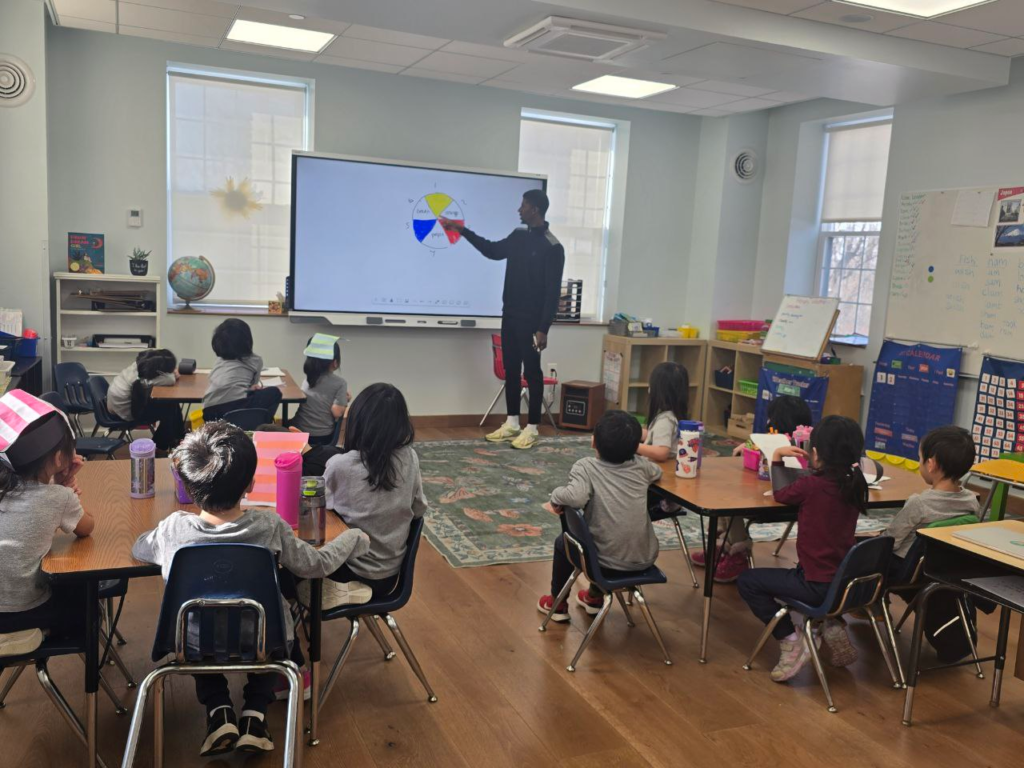 In our first art class today, the kindergarteners explored the magic of primary colors and had a colorful time! Sitting together around the table, the students watched closely as their teacher introduced red, blue, and yellow. With bright paint bottles and eager smiles, they learned how these three simple colors can mix to create many new ones.